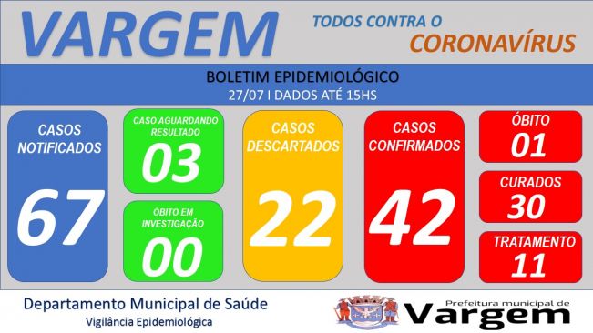 A Prefeitura Municipal de Vargem através do setor de Vigilância Epidemiológica apresenta novo Boletim Epidemiológico.