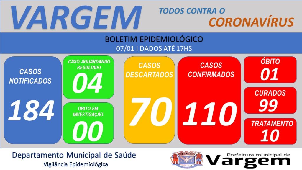 Prefeitura Municipal de Vargem através do setor de Vigilância Epidemiológica apresenta novo Boletim Epidemiológico.